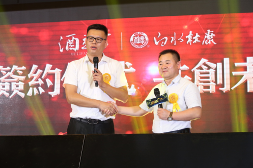 庆典上,酒立方与白水杜康携手合作共赢未来,为表彰优秀合作商,树立行业典范,分享成功经验,帮扶中小创业者通过麦上平台快速复制成功模式,酒立方为其颁发了金冠奖,以支持和鼓励双方的共同进步。